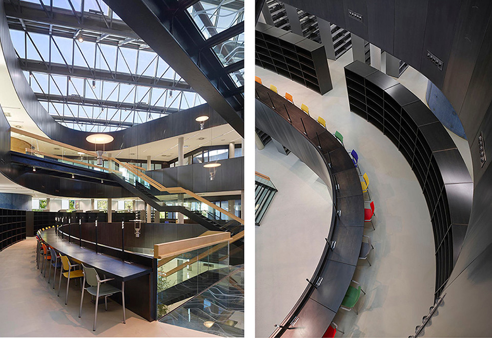 Natural light was an important factor for gaining greater control over the thermal loads caused by solar radiation. The central atrium, as the heart of the building, brings together the activities that take place in the surrounding galleries in a generous space. In addition to fostering communication and allowing natural light to penetrate the entire building, it enables natural ventilation, given that the skylight and windows can be opened automatically to create a chimney effect that allows air-conditioning costs to be reduced in months like May or June.