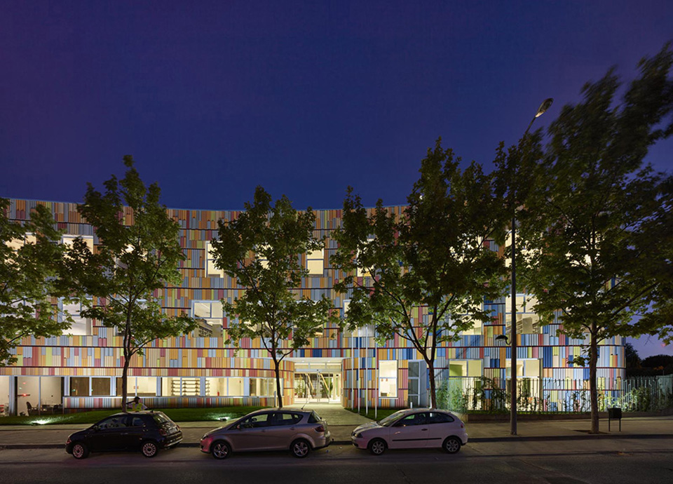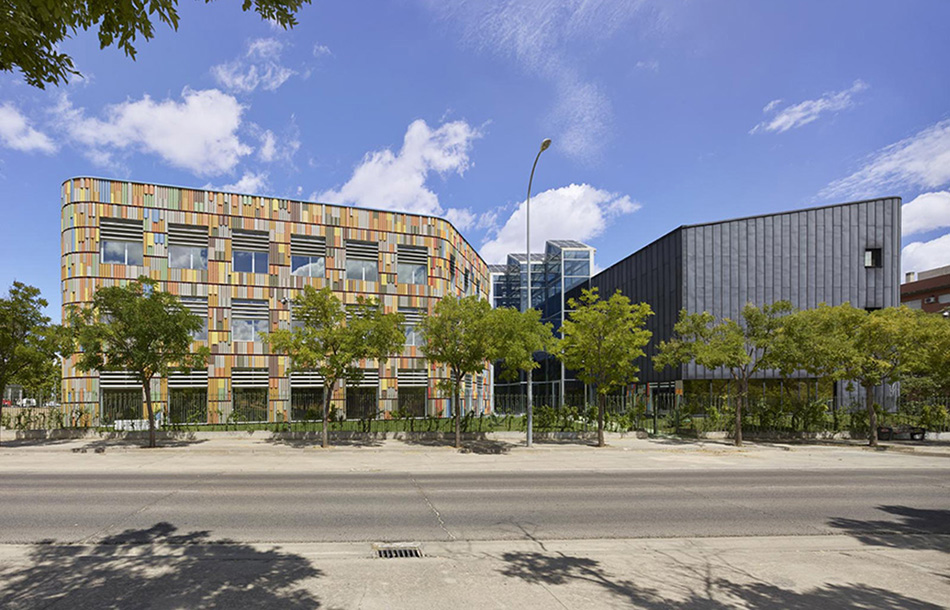 On the outside the building has an institutional appearance. As we approach the interior, however, it becomes more playful and cheerful, but without losing the general conception that a building of this scale represents to the neighbourhood. The façade-sculpture has its counterpoint in the Archive building, which also features a sinusoidal envelope of zinc sheets mimicking bundles of files, thus making it a true repository of memories.